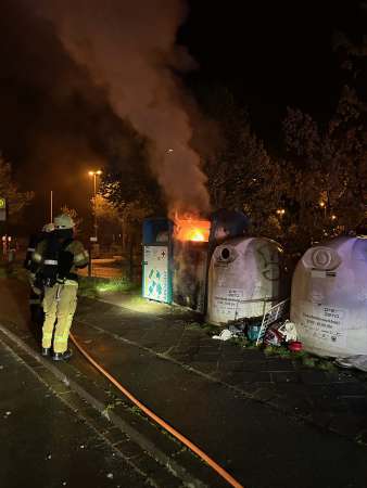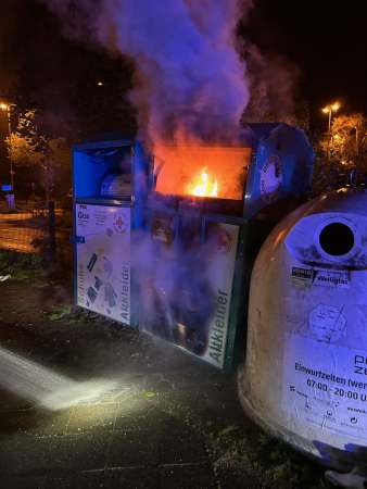 Beim Eintreffen der eingesetzten Polizeikräfte brannte der Inhalt des Containers bereits, Flammen traten aus der Einwurföffnung aus. Die Feuerwehr konnte den Brand zeitnah löschen. Es entstand Sachschaden an dem Container.