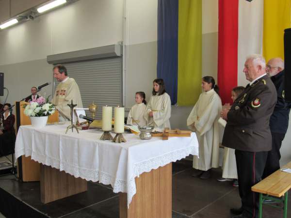 Begonnen haben die Feierlichkeiten zur Einweihung mit einer heiligen Messe in den Feuerwehrhallen. Nach der heiligen Messe wurden alle Anwesenden begrüßt und Interviews mit der Bürgermeisterin der Partnergemeinde, dem Bürgermeister der Gemeinde Markersdorf, dem Kommandaten der Feuerwehr Markersdorf und dem Strandbrandmeister a. D. Ulrich Schiwek der Feuerwehr Lippstadt wurden geführt.