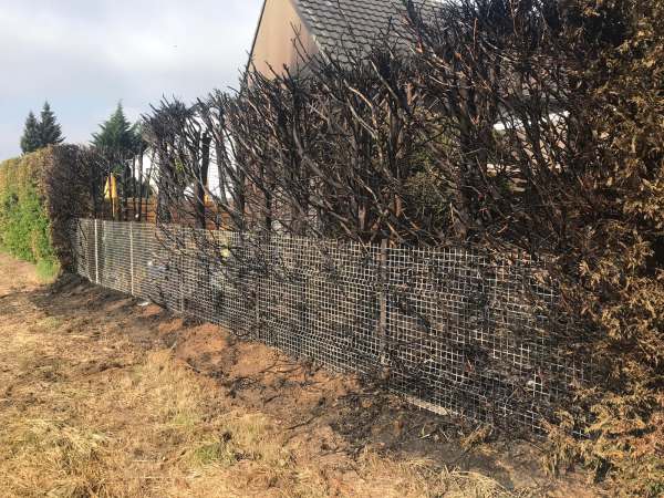 Aus noch unbekannter Ursache geriet am Samstagabend die Hecke bzw. ein im Außenbereich abgestellter Kunststoffcontainer an einem Lokal an der Rüthener Straße in Brand. Gegen 23:50 Uhr verständigten Zeugen Polizei und Feuerwehr. Bei Eintreffen der Einsatzkräfte waren meterhohe Flammen festzustellen, die einen Teil der Grundstückshecke sowie den Container bereits zerstört hatten.