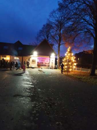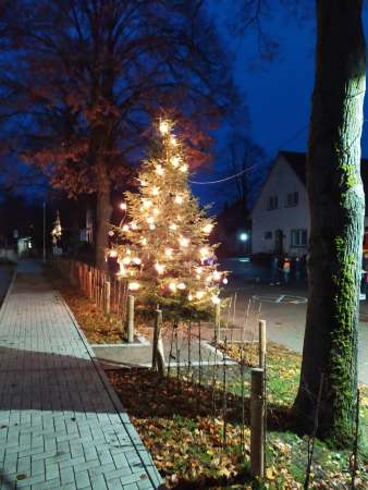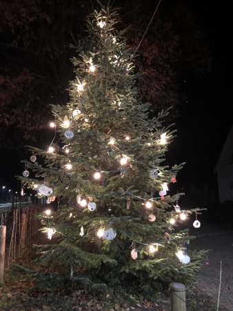 Mit Einbruch der Dunkelheit erstrahlte dann der Weihnachtsbaum, der von Franz Schulte gespendet wurde, samt Baumschmuck in vollem Glanz!