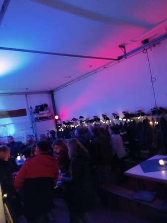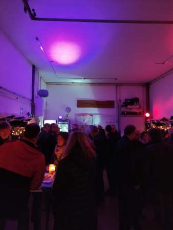 Wegen der doch schon frostigen Temperaturen wurde das Gerätehaus in eine wohltemperierte Cafeteria mit Kaffee, Waffeln, Glühwein und Bratwurst umgewandelt.