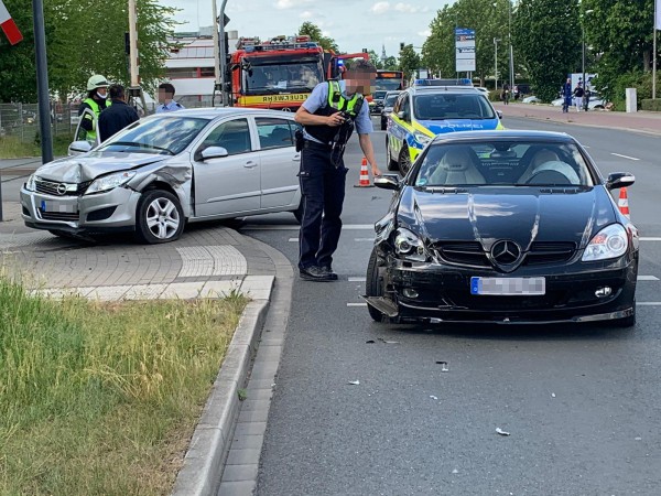 Am Montagnachmittag, gegen 17:05 Uhr, hat ein 80-jähriger Autofahrer beim Abbiegen von der Landsberger Straße auf die Erwitter Straße ein anderes Fahrzeug übersehen. Ein 48-jähriger Lippstädter konnte trotz Bremsmanövers den Zusammenstoß nicht mehr vermeiden. Der 80-Jährige und seine Beifahrerin im Opel blieben unverletzt, der 48-jährige Mercedes-Fahrer verletzte sich leicht. Durch den Unfall wurde die an der Kreuzung befindliche Ampel leicht verbogen. Der Sachschaden beläuft sich geschätzt auf insgesamt etwa 15.000 Euro.