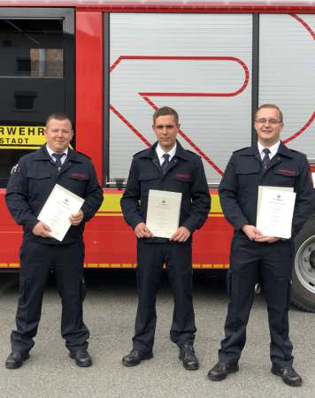Lukas Naber, Felix Husemann und Daniel Markert (alle Feuerwehr Lippstadt) wurden vom Bürgermeister Christof Sommer zu Brandmeistern ernannt. Seit Anfang Oktober versehen die frischen ernannten Brandmeister bei der Feuerwehr Lippstadt den Einsatzdienst zum Wohle der Bevölkerung. Wir wünschen Allen einen guten Start und stets eine gesunde Heimkehr aus ihren Einsätzen!