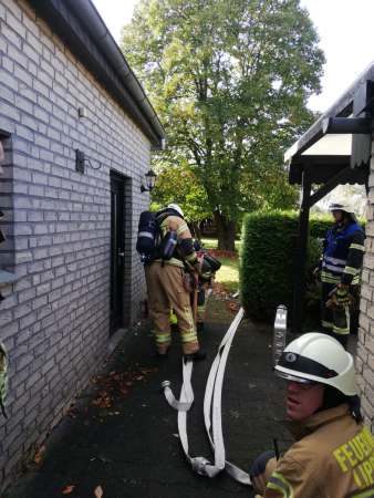 „Im Dornei 115 – Rauchentwicklung aus Fenster“ lautete die dritte Einsatzmeldung des Tages nach einer kurzen Mittagspause. Bei der Erkundung berichteten die Anwohner, dass zwei Monteure die Heizung des Wohnhauses reparieren würden. Der Rauch kam allerdings aus dem besagten Heizungsraum und von den Monteuren fehlte jede Spur. Aus diesem Grund war größte Eile geboten. Nachdem ein Monteur gefunden wurde, ging die Suche nach seinem Kollegen weiter. Im Laufe des Einsatzes stellte sich heraus, dass der vermisste Monteur seinen Kollegen alleine gelassen hatte und sich nicht mehr am Einsatzort befand.