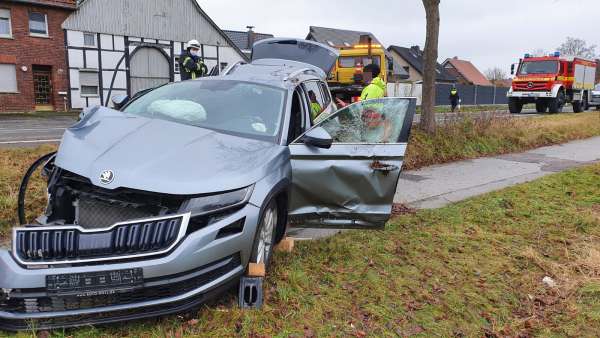 Durch die Wucht des Aufpralls überschlug sich das Fahrzeug und stieß mit dem Fahrzeugdach gegen einen weiteren Baum. Der Fahrzeugführer wurde schwer verletzt gerettet und in ein Krankenhaus in Lippstadt verbracht. Warum der Fahrzeugführer von der Fahrbahn abkam, konnte derzeit noch nicht ermittelt werden.