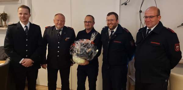 Zur Jahresdienstbesprechung begrüßte Löschgruppenführer Daniel Koppmeier die Mitglieder der Löschgruppe, die Kameraden der Ehrenabteilung, Frederik Walter als Jugendwart der Jugendfeuerwehr Lipperode, Guido Seiger als Zugführer Zug 3, Bernd Peterburs als Wehrführer, Jannis Kemper als Ortsvorsteher Lipperode und einen ganz besonderen Gast, der wohl den weitesten Weg zur Jahresdienstbesprechung auf sich genommen hat, Thierry Malbranque, französischer Feuerwehrmann aus Arras, der gerade bei dem Kameraden Franz-Josef Ratzel zu Besuch war. Thierry Malbranque bekam einen Feuerwehrhelm und ein Ärmelabzeichen überreicht.