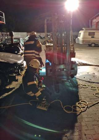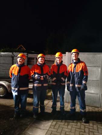 Derweil sind die Aktiven der Löschgruppe Lipperode unter der Abschnittsführung von David Ratzel mit einer technischen Hilfeleistung beschäftigt. Durch den Teileinsturz wurde eine Person unter einer Maschine eingeklemmt. Die tausendfach geübten Griffe, sie laufen jetzt fast wie von selbst ab. Nach kurzer Zeit ist die Maschine mit dem Hebekissen angehoben und aus Sicherheitsgründen mit Holz unterbaut.