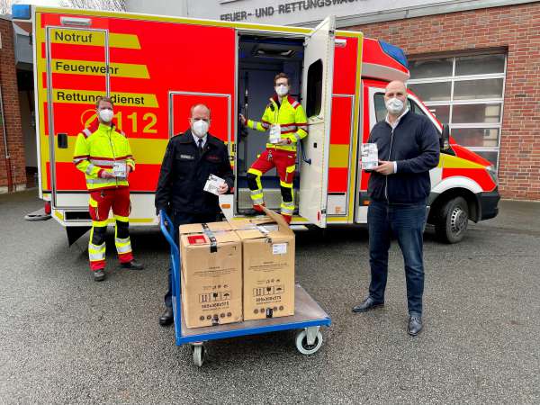 Die Lippstädter Firma KREMERService GmbH & Co. KG (i. Gr.) spendete der Feuerwehr Lippstadt 2.400 FFP2-Masken.