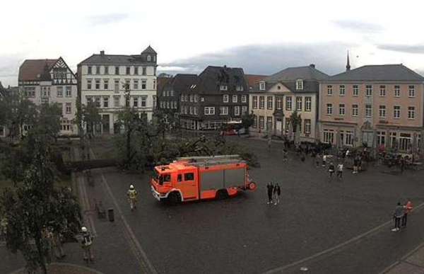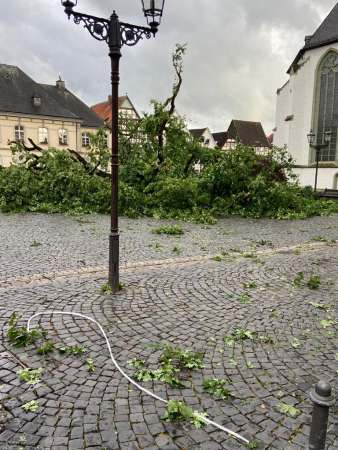 „Aufgrund der erheblichen Schäden besteht aktuell im Bereich der Innenstadt von Lippstadt sowie in den westlichen Ortsteilen jedoch Gefahr für Leib und Leben aufgrund von herabfallenden Dachziegeln und Ästen sowie umstürzenden Bäumen. Deshalb appelliert die Einsatzleitung, den Aufenthalt im Freien sowie Autofahrten zu meiden“, heißt es jetzt auch aus dem Kreishaus