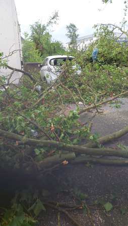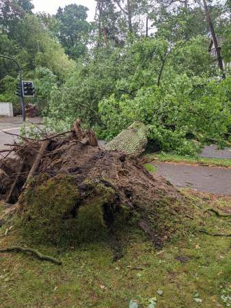 Er habe aus seinem Büro an der Kastanienallee sogar gesehen, wie der Baum in die Tiefe stürzte: „Mein Mitarbeiter sagte, dass da ein dicker Ast geflogen kommt. Dann sagte er, dass noch einer kommt und in dem Moment fiel schon der Baum.“ Das letzte was er von seinem nagelneuen Touareg hörte, war die Diebstahl-Warnanlage. „Ich habe schon viel gesehen. Aber sowas habe ich noch nicht erlebt“, sagt er über das Unwetter.