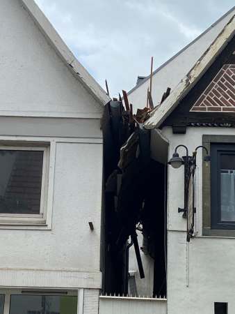 In Hellinghausen hat der Sturm gleich den kompletten Turmhelm der St. Clemens Kirche vom Kirchturm gehoben. Es wird lange dauern, bis das historische Gebäude wieder so in der Landschaft steht, wie es vor einigen Stunden noch war.