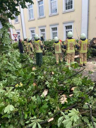 Dennoch sei er mit dem ersten Tag nach dem Unwetter „sehr zufrieden“, so der Leiter der Feuerwehr. Doch es gibt noch viel zu tun: „Es gibt noch Arbeit für Tage und Wochen.“