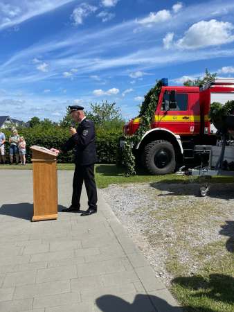 Nach einer einleitenden Rede vom Löschgruppenführer Christoph Voßebürger, betonte der Wehrführer Christian Meyer die besondere Wichtigkeit der Fahrzeuge für die gesamte Feuerwehrgemeinschaft. Der Zugführer des Löschzugs 4 Olaf Deimel stellte die Bereicherung der Fahrzeuge heraus und der Ortsvorsteher von Hörste Berthold Buttler bedankte sich für die geleistete Arbeit in den vergangenen Jahren und zollte allen Feuerwehrkameraden und Feuerwehrkameradinnen seinen Respekt. Im Anschluss folgte die Segnung der drei Fahrzeuge.
