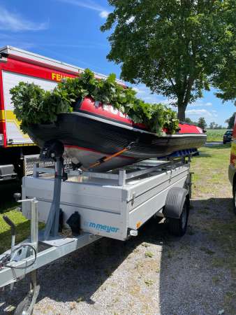 Das bereits im Jahr 2019 in Dienst gestellte Boot, das 2020 in Dienst gestellte TLF 3000 und das im vergangenen Jahr in Dienst gestellte MTF. Die Feierlichkeit fand bei strahlendem Sonnenschein unter freiem Himmel statt.