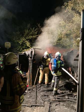 Eine, in der Gartenhütte gelagerte, 11 kg Propangasflasche konnte sicher entfernt werden. Es kam zu keinem Personenschaden. Die Brandursache ist derzeit noch unbekannt.