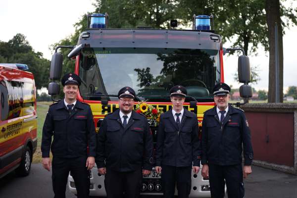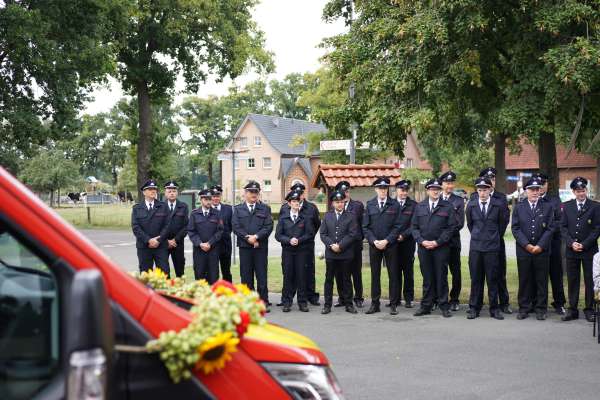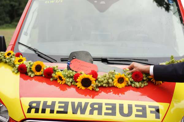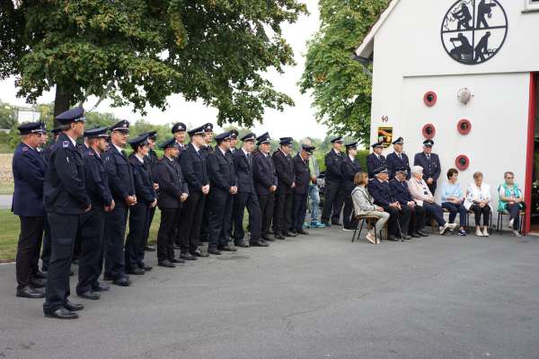 Stellv. Zugführer und Löschgruppenmitglied Martin Hoppe konnte zu dem offiziellen Akt die beiden stellv. Wehrführer Bernd Peterburs und Guido Pfahlberg, der Löschzugführer Olaf Deimel, Jörg Vätter (früherer Mitarbeiter der Feuerwache und verantwortlich für die Beschaffung der beiden Fahrzeuge), der Ortsvorsteher Franz Hoppe, Kameraden der Löschgruppe Hörste, die Ehrenabteilung der Löschgruppe Rebbeke die aktiven Kameraden der Löschgruppe und die Partnerinnen der Löschgruppenmitglieder begrüßen.