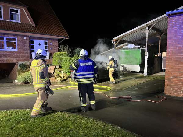 Zu einem Brand eines Pkw auf einem Hofgelände an der Benninghauser Heide, wurden am Freitagabend, gegen 20.50 Uhr, Feuerwehr und Polizei gerufen. Auf dem Hof brannte ein abgestellter Pkw. Die Feuerwehr führte den Löschangriff durch.