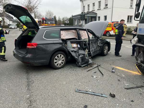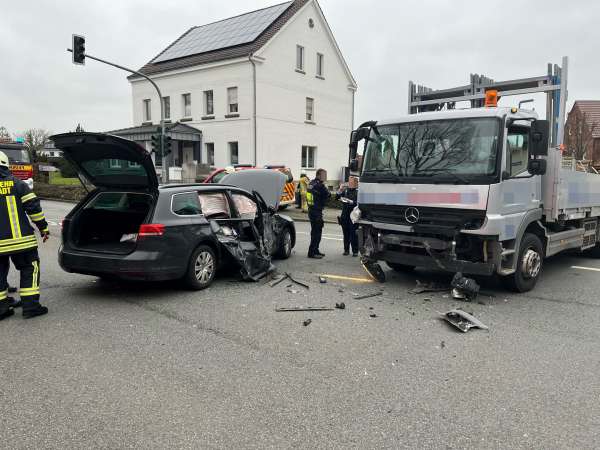 Dabei missachtete sie die Vorfahrt eines von links kommenden VW-Passats. Die 21-jährige Fahrerin aus Lippstadt konnte dem Lkw nicht mehr ausweichen. Es kam zur Kollision, bei der die Fahrerin des VW-Passats und ihr 47-jähriger Beifahrer leicht verletzt wurden.