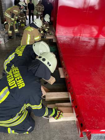 Zusätzlich zur schriftlichen Prüfung mussten die Gruppe einen dreiteiligen Löschangriff aufbauen und außerdem ihr Können in der technischen Hilfe unter Beweis stellen. Alle haben bestanden und so fügt der Leiter der Feuerwehr Oberbrandrat Christian Meyer hinzu, einen sehr guten Wissenstand bei der schriftlichen und den praktischen Prüfungen unter Beweis gestellt. Das ist in erster Linie ein Verdienst aller Ausbilder, die unter der Leitung von Brandoberinspektor Frank Baier das dazu erforderliche umfangreiche Wissen vermittelt haben und denen Oberbrandrat Christian Meyer für ihren Einsatz dankte.