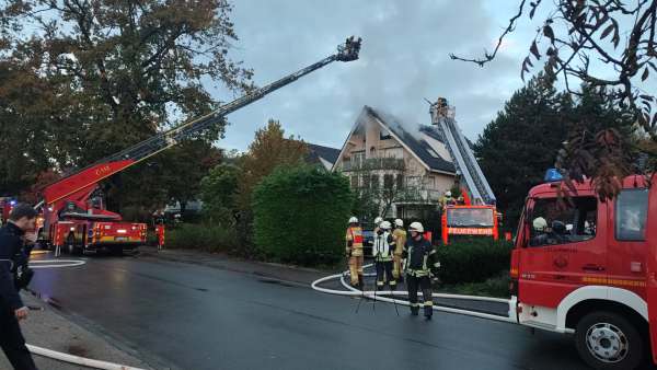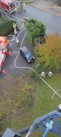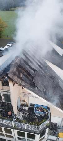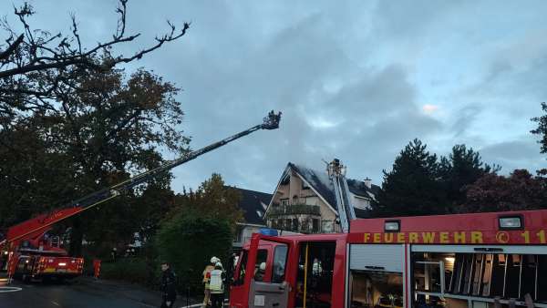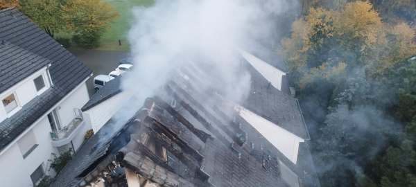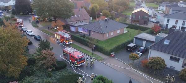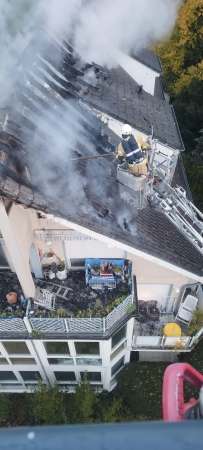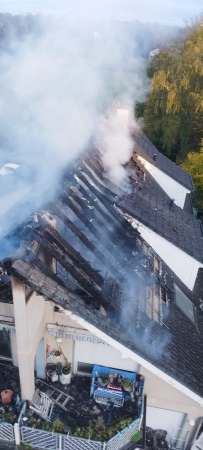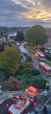 Am Samstagmorgen, 28.10. erhielt die Feuerwehr gegen 07:05 Uhr Kenntnis von einem Wohnungsbrand in der Straße "Grüner Weg" in Bad Waldliesborn. Feuerwehr und Polizei begaben sich unverzüglich zur Einsatzörtlichkeit und konnten schon bei Annäherung an das Mehrfamilienhaus hohe Flammen im Bereich der Dachgeschosswohnung und des Daches erkennen.