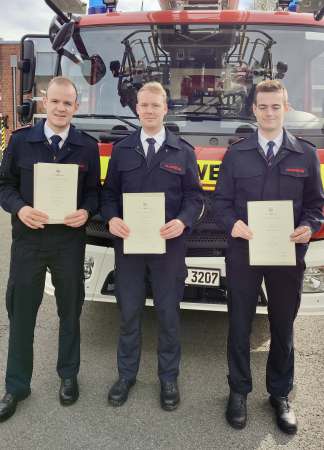Weiteren Grund zur Freude haben: v.l.: Lars Väter, Christopher Pöppe, Kai Strohmeier. Alle drei wurden nach durchlaufen der Probezeit zum Beamten auf Lebenszeit ernannt.