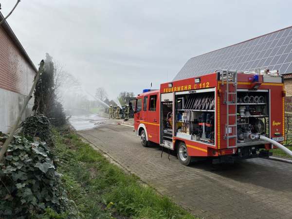 Angenommen wurde ein Brand 3, brennt Lagerhalle mit mehreren vermissten Personen. Unter der Einsatzleitung von Markus Berensmeier (Löschzug Verlar) und den Abschnittsleitern Martin Sprick (Löschzug Mönninghausen) und Olaf Deimel (Löschzug 4, Feuerwehr Lippstadt) wurden die Einheiten koordiniert und zielgerichtet eingesetzt. So wurden mehrere Trupps unter Atemschutz zur Menschenrettung innerhalb des Gebäudes eingesetzt, die Löschwasserversorgung für die gesamte Einsatzstelle hergestellt und Riegelstellungen zu den umliegenden, meist landwirtschaftlichen Gebäuden aufgebaut. Die Fäden liefen am Einsatzleitwagen der Löschgruppe Rebbeke zusammen. Die Aufgaben der Löschgruppe Hörste konzentrierten sich auf die Herstellung einer ständigen Wasserversorgung, auf die Riegelstellung zum nördlich gelegenen, landwirtschaftlichen Betrieb und die Absicherung der Einsatzstelle.
