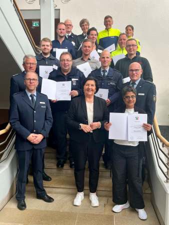 Den insgesamt 18 anwesenden Akteuren des Crash Kurs NRW Teams übergab die Landrätin eine Urkunde und ein Präsent als Zeichen der Dankbarkeit. Im Anschluss nutzte das Team die Gelegenheit, sich außerhalb der offiziellen Veranstaltungen untereinander auszutauschen.