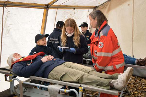 Bereits am frühen Morgen sorgte ein Team der Realistischen Unfalldarstellung dafür das alle Verletzten realistisch geschminkt wurden. Aufgrund der angenommenen Überflutungen mussten die Retter von der Jugendfeuerwehr und der DLRG – Jugend mit Schlauchbooten die Verletzten suchen und transportieren. Für die Erstversorgung errichteten die Malteser Jugend und das Jugendrotkreuz einen Behandlungsplatz und bauten Sanitätszelte auf.