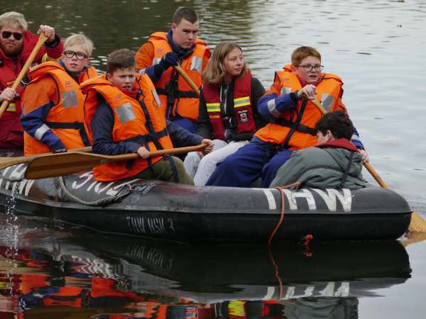 Danach hatten die Jugendlichen die Gelegenheit mit den Booten der DLRG und des THW das Paddeln und Schlauchbootfahren zu erlernen.