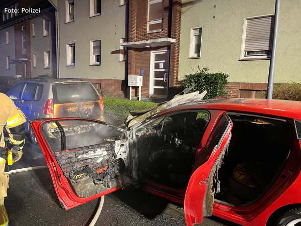 Ein aufmerksamer Zeuge meldete gestern um 03:19 Uhr den Brand eines Pkw Renault Clio in der Landsberger Straße. Durch die herbeigerufene Feuerwehr wurde der Brand schnell gelöscht. Dennoch wurde ein vor dem Renault geparkter Pkw Ford in Mitleidenschaft gezogen. Nach derzeitigem Stand der Ermittlungen entstand der Brand im Bereich des Motorraums des völlig ausgebrannten Renault.