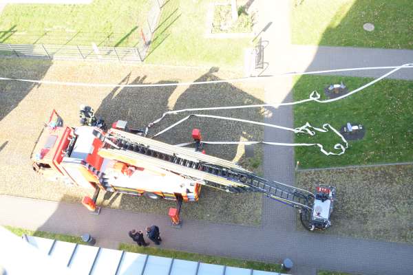Wir sind in der vierten Etage angekommen, der Bereich vor den Zimmern ist verraucht, bestätigtes Feuer, wir gehen vor zur Menschenrettung“. Dieser Funkspruch des Angriffstrupps würde im tatsächlichen Einsatz durch Mark und Bein gehen und eine große Anzahl von Rettungskräften der Feuerwehr, des Rettungsdienstes und der Hilfsorganisationen in Marsch setzen.