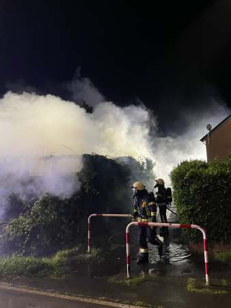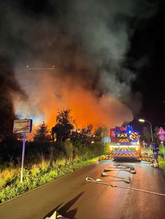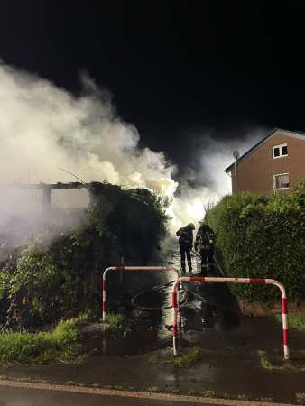 Am Freitag, den 01.08.2025, gegen 23:20 Uhr gerieten aus bisher ungeklärten Gründen ein Schuppen und eine Garage eines angrenzenden Zweifamilienhauses in Eickelborn in Brand. Personen wurden bei dem Brand nicht verletzt. Derzeit ist Brandstiftung als Ursache nicht auszuschließen. Die Ermittlungen dauern an.