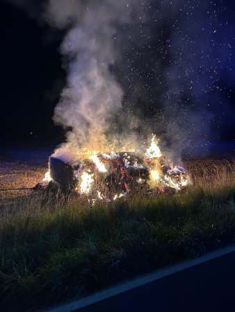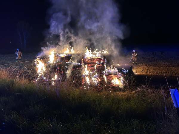 n der vergangenen Nacht meldete eine aufmerksame Zeugin gegen 00:00 Uhr einen brennenden Strohballenstapel auf einem Feld in der Benninghauser Straße. Die umgehend alarmierten Einsatzkräfte der Feuerwehr bekämpften den Brand, der sich auf einer Fläche von etwa 40 qm ausbreitete und konnten diesen letztendlich löschen.
