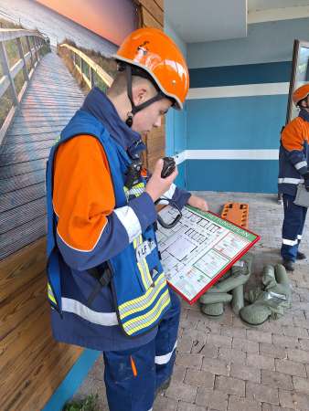 In insgesamt 9 realistisch simulierten Einsätzen mussten die Nachwuchsbrandschützer ihr Können unter Beweis stellen. Auf dem Plan standen unter anderem eine Brandmeldeanlage (BMA), eine Türöffnung, eine ungewöhnliche Tierrettung „Welpe auf Baum“ – glücklicherweise ein Stofftier, ein Saunabrand, ein ABC-Einsatz, eine Ölspur, eine Personensuche und sogar ein Reifenlagerbrand.