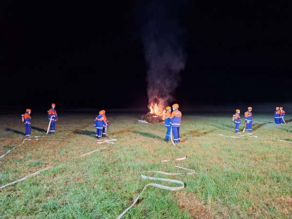 Ein ganz besonderes Highlight war der als "unklare Feuerschein" gemeldete Einsatz: Auf einer Freifläche wurde – unter strengster Aufsicht und mit allen Sicherheitsmaßnahmen – ein kleines Feuer entfacht, das die Jugendlichen eigenständig löschen durften. Die leuchtenden Augen und das große Engagement der jungen Einsatzkräfte sprachen Bände.