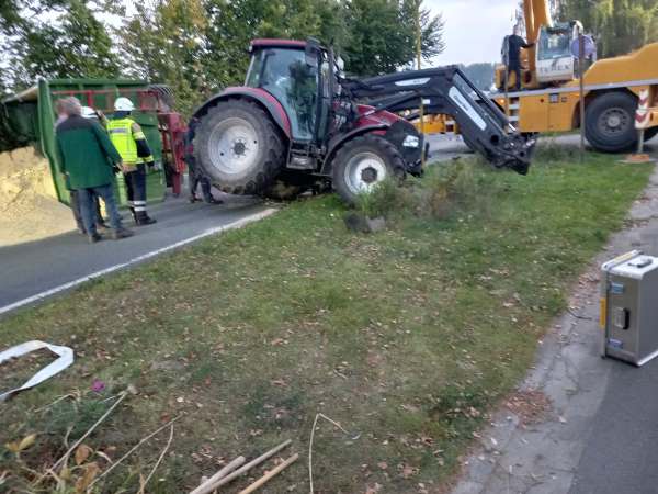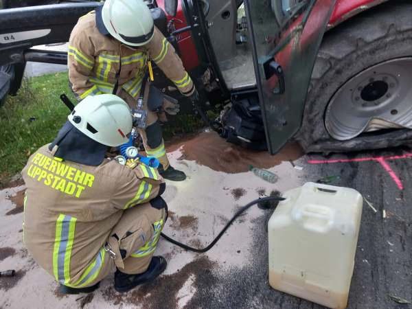 Durch die Kollision kippte der mit Erntegut beladene Anhänger des Traktors um. Der Fahrer des Pkw, ein 74-jähriger Mann aus Lippstadt, blieb unverletzt. Der Traktorfahrer, ein 18-jähriger aus Delbrück, wurde leicht verletzt.