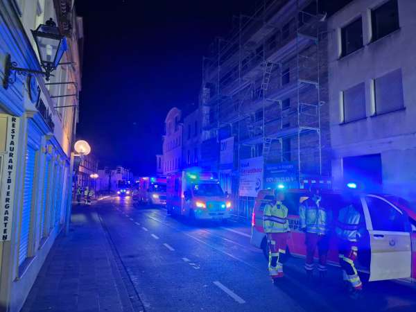 Feuerwehr, Rettungsdienst und Polizei wurden am Montagabend um 23.06 Uhr zu einem Wohnungsbrand mit Menschenleben in Gefahr in die Brüderstraße in die Innenstadt alarmiert.