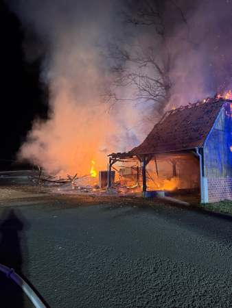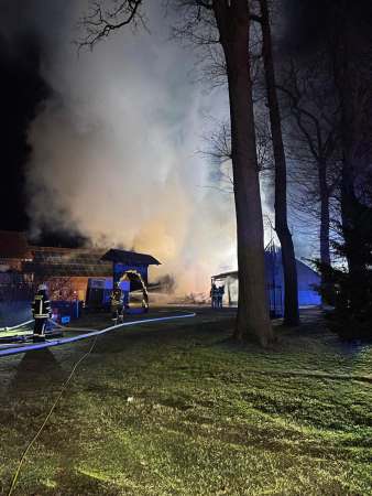 Am heutigen 1. Weihnachtsfeiertag war die Nacht um 5 Uhr für einige Einheiten der Feuerwehr Lippstadt abrupt beendet. In der Straße In den Röten in Rebbeke ist es aus bislang unbekannter Ursache zu einem Brand eines Unterstandes gekommen.