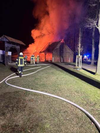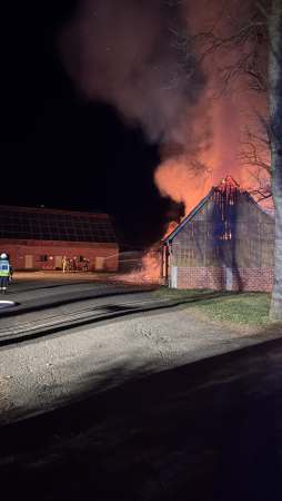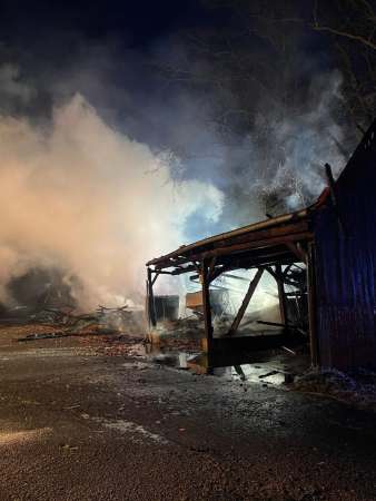 Zur Brandbekämpfung und für eine Riegelstellung (Schutz des Wohnhauses und eines angrenzenden Kuhstalls aufgrund von Funkenflug) wurden zeitgleich vier Trupps unter Atemschutz mit vier C-Rohren eingesetzt. In dem Unterstand befanden sich Maschinen und Geräte sowie eine Werkstatt und ein Strohlager.