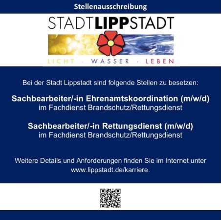 Bei der großen kreisangehörigen Stadt Lippstadt (72.000 Einwohner) ist im Fachdienst Brandschutz/ Rettungsdienst zum frühestmöglichen Zeitpunkt die Stelle der