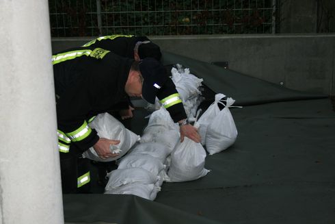 Die Keller wurden leergepumpt und die Straßen teilweise gesperrt. Ca. 6.000 Sandsäcke wurde zentral am Baubetriebshof von Mitarbeitern des Baubetriebshofes, der Feuerwehr und dem Technischen Hilfswerk gefüllt.