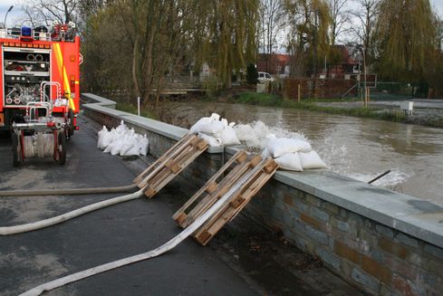 Die Maßnahmen der Feuerwehr wurden von der Firma Lippstädter Transportbeton (LTB) unterstützt, in dem so genannten Big Backs (große Taschen) mit Sand gefüllt worden waren. 60 von den 1 m langen, 1 m breiten und 1,20 m hohen Taschen (künstlicher Wall) wurden gefüllt und verstärken das Ufer im Bereich des Glaseweges.
