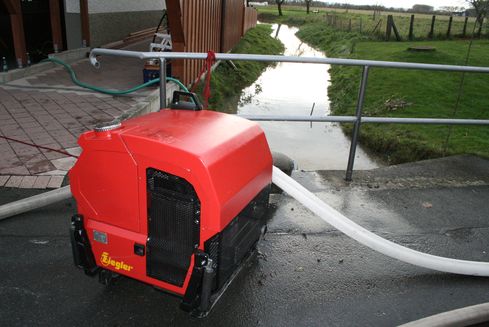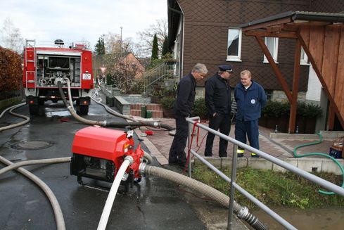 Das Wasser aus dem Nebenbachlauf wurde ständig abgepumpt, da es sonst in die Kellerräume geflossen wäre. Hilfreich war hier die Hochwasserschutzwand, die sich neuerdings direkt in der Straße befindet und die extra neu errichtete Hochwasserschutzmauer.