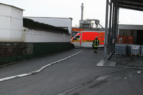In einem Entsorgungsunternehmen wurde die Brandmeldeanlage durch eine Verpuffung ausgelöst. Ein Mitarbeiter erlitt dabei schwere Brandverletzungen. Ein Rettungshubschrauber und Wehrleute vom Löschzug 1 wurden nachgefordert.