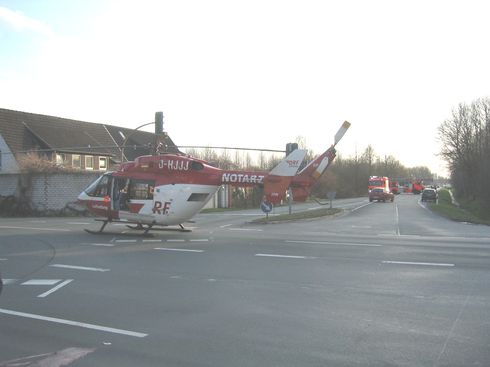 Im Kreuzungsbereich Ostlandstraße / B 55 wurde aus ungeklärter Ursache ein jugendlicher Skater-Fahrer von einem LKW überrollt und dabei schwer verletzt. Die Feuerwehr unterstützte den Rettungsdienst und die Landung des Rettungshubschraubers aus Dortmund.
