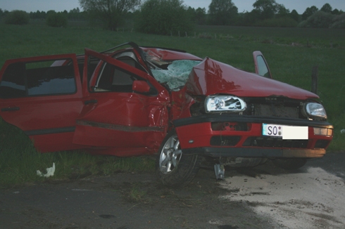 Bei einem Verkehrsunfall wurden drei Personen schwer verletzt. Durch die Feuerwehr wurden ausgelaufene Betriebsstoffe abgestreut und die Fahrzeugbatterie abgeklemmt.