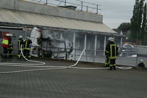 Bei Eintreffen der Wachbereitschaft stand das Führerhaus von einem 40-Tonnen-LKW lichterloh in Flammen. Der Brand wurde von zwei Trupps mit zwei C-Rohren abgelöscht. Die Feuerwehr Lippstadt, unter der Leitung von Hauptbrandmeister Klemens Homberg, war mit zehn Einsatzkräften und vier Feuerwehrfahrzeugen, darunter ein Tanklöschfahrzeug, ausgerückt.