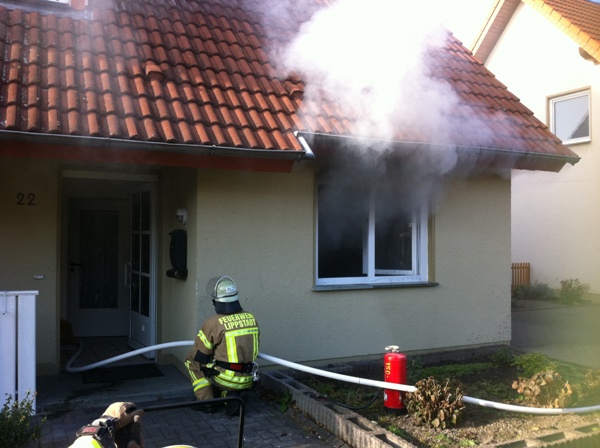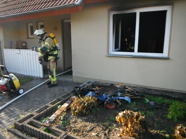 Zimmerbrand in einem Einfamilienhaus. Da niemand zu Hause war musste die Wohnungstür gewaltsam geöffnet werden. In einem Schlafzimmer brannte aus ungeklärter Ursache ein Kinderbett. Der Brand wurde von einem Trupp unter Atemschutz mittels C-Rohr abgelöscht. Anschließend wurden die Räumlichkeiten mittels Hochleistungslüfter quergelüftet.