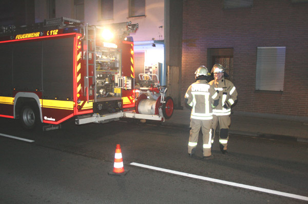Anwohner wurden durch Knallgeräusche geweckt. Ein Feuerschein war sichtbar. Bei Eintreffen stellte die Feuerwehr eine brennende Mülltonne im Hinterhof fest. Der Brand wurde mit dem Schnellangriff abgelöscht. Der zeitgleich alarmiere Löschzug 1 brauchte nicht mehr ausrücken.
