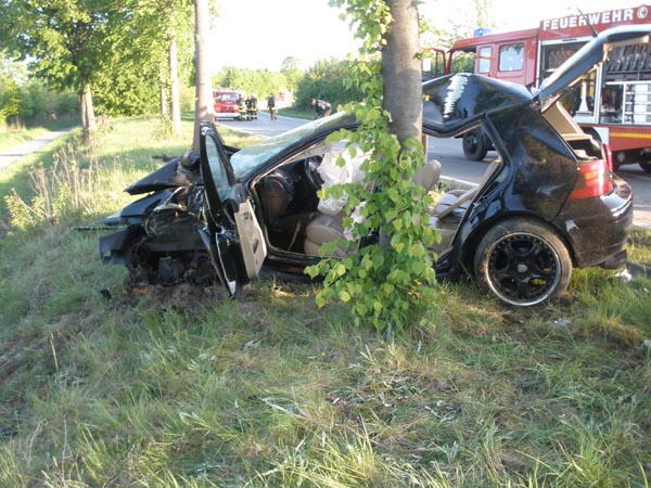 Auf der L 536 von Lippstadt in Richtung Bökenförde war es aus ungeklärter Ursache zu einem schweren Verkehrsunfall gekommen. Ein PKW war in der langgezogenen Kurve von der Fahrbahn abgekommen und gegen einen Straßenbaum geprallt. Durch die Feuerwehr wurde mit Hilfe von hydraulischen Rettungsgeräten (Schere und Spreizer) die beiden Hintertüren des PKW entfernt. Dadurch wurde für den Rettungsdienst ein Zugang geschaffen, um die schwer verletzte Person besser behandeln zu können. Aufgrund der Schwere der Verletzungen wurde ein Rettungshubschrauber angefordert, der in der Nähe zur Unfallstelle landete. Der Landeplatz wurde von der Feuerwehr abgesperrt.